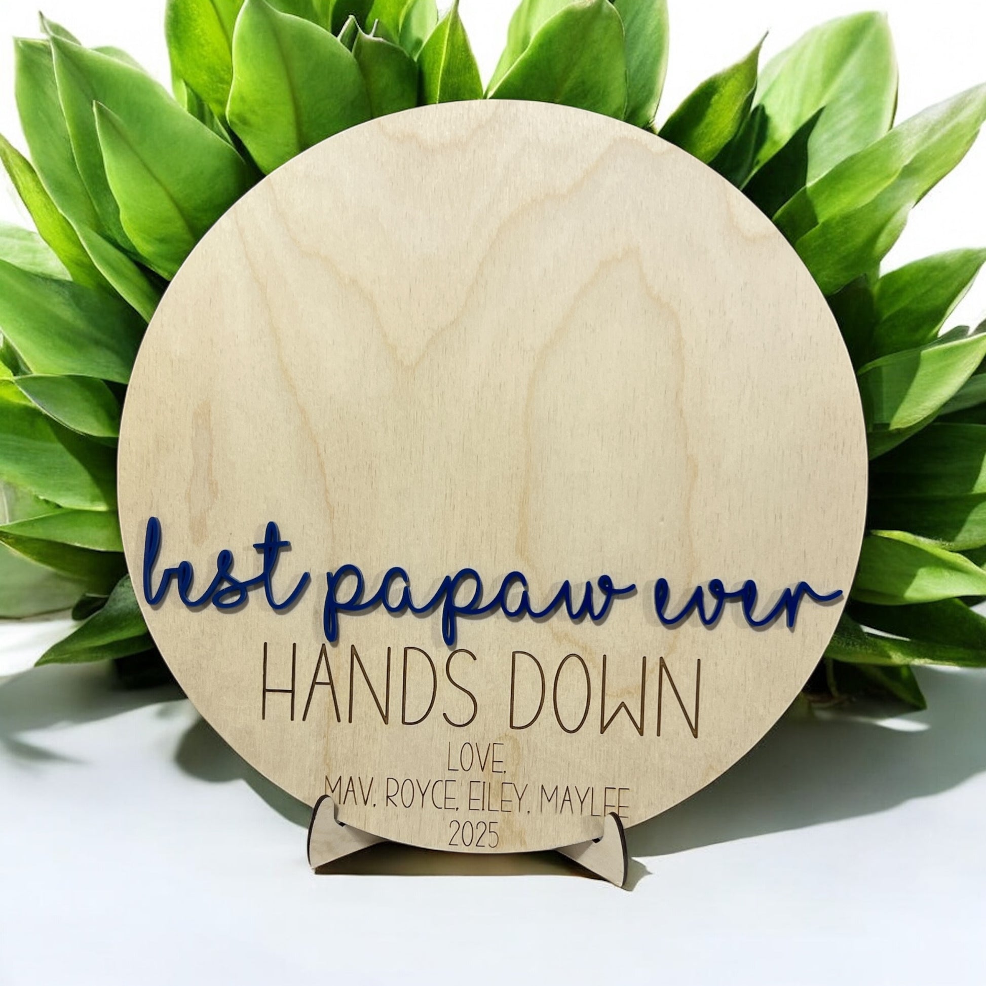 - The phrase "Best Dad/Papa/Etc. Ever" is made with acrylic and is 3d. The other words are engraved.