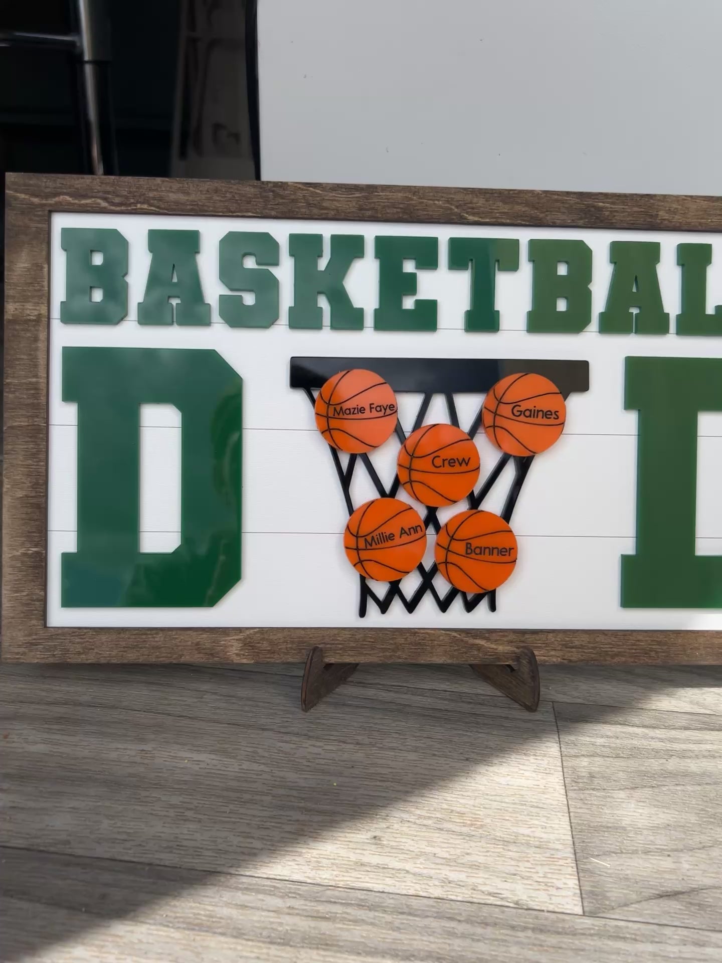 Show dad how much his support means with this thoughtful, personalized sign that celebrates both his love of basketball and his amazing kids!